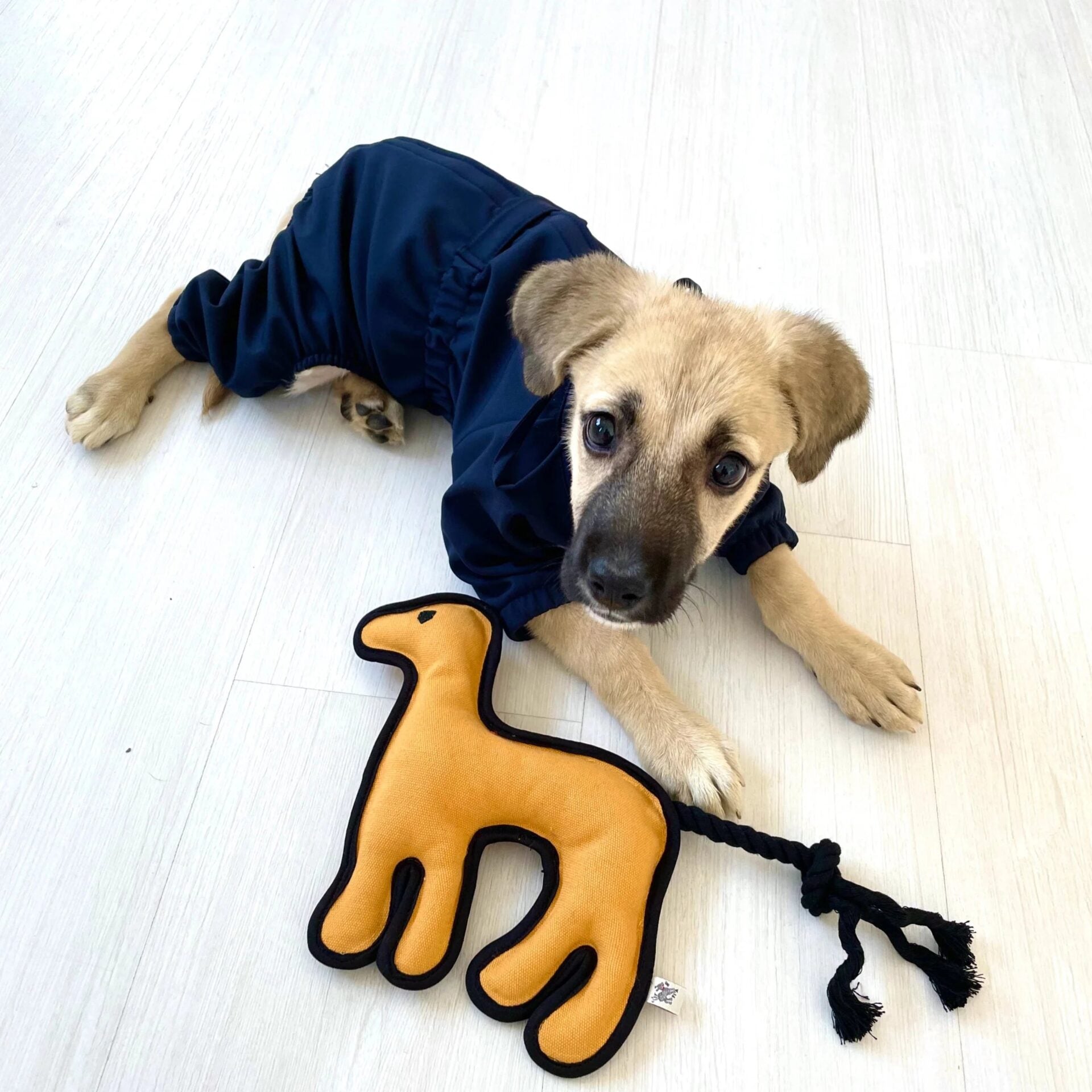 Made with %100 cotton fabric, and cotton rope and fitted with a squeaker for extra fun, each Animal Toy is handmade with care in our studio. Crafted from high-quality materials, the Toy is built to withstand rough play and gnawing.